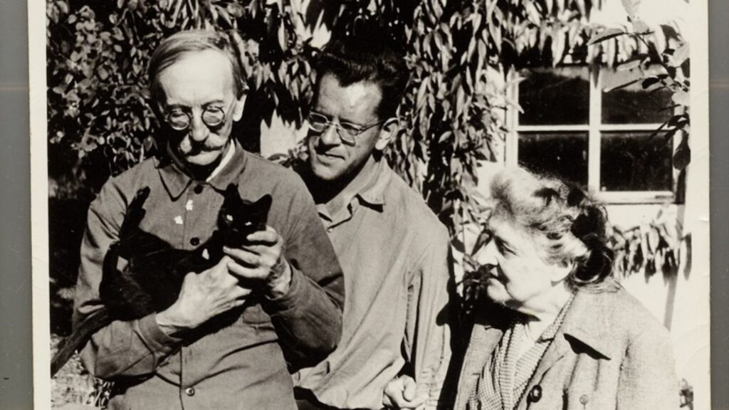 Společně s rodiči a kocourkem před altánkem, fotoarchiv rodiny Reynkovy